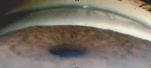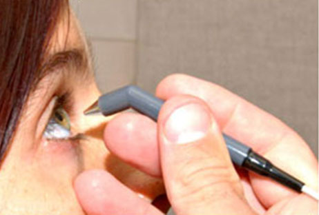 This diagnostic exam helps determine whether the angle where the iris meets the cornea is open and wide or narrow and closed. During the exam, eye drops are used to numb the eye. A hand-held contact lens is gently placed on the eye. This contact lens has a mirror that shows the doctor if the angle between the iris and cornea is closed and blocked (a possible sign of angle-closure or acute glaucoma) or wide and open (a possible sign of open-angle, chronic glaucoma).