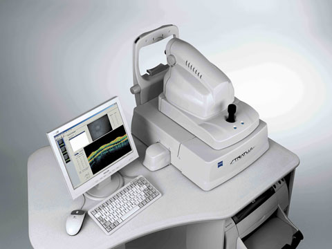 1. Retinal nerve fibre layer thickness(optical coherence tomography) : This machine measures the thickness of the retinal nerve fibers; glaucoma causes death of the nerve fibers . This instrument is useful for early detection of damage and change over a period of time.