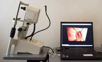 2. Heidelberg retinal tomography (HRT) : this device documents the optic nerve and retinal nerve fiber layer and it can also be used to detect progression of the disease. It is a non-contact, rapid test.